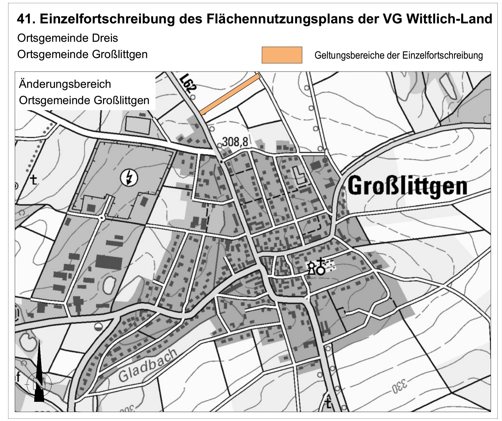 Der Entwurf der Einzelfortschreibung des Flächennutzungsplanes, Gemarkung Dreis Flur 10 und 14 sowie Gemarkung Großlittgen, Flur 3 besteht aus:
