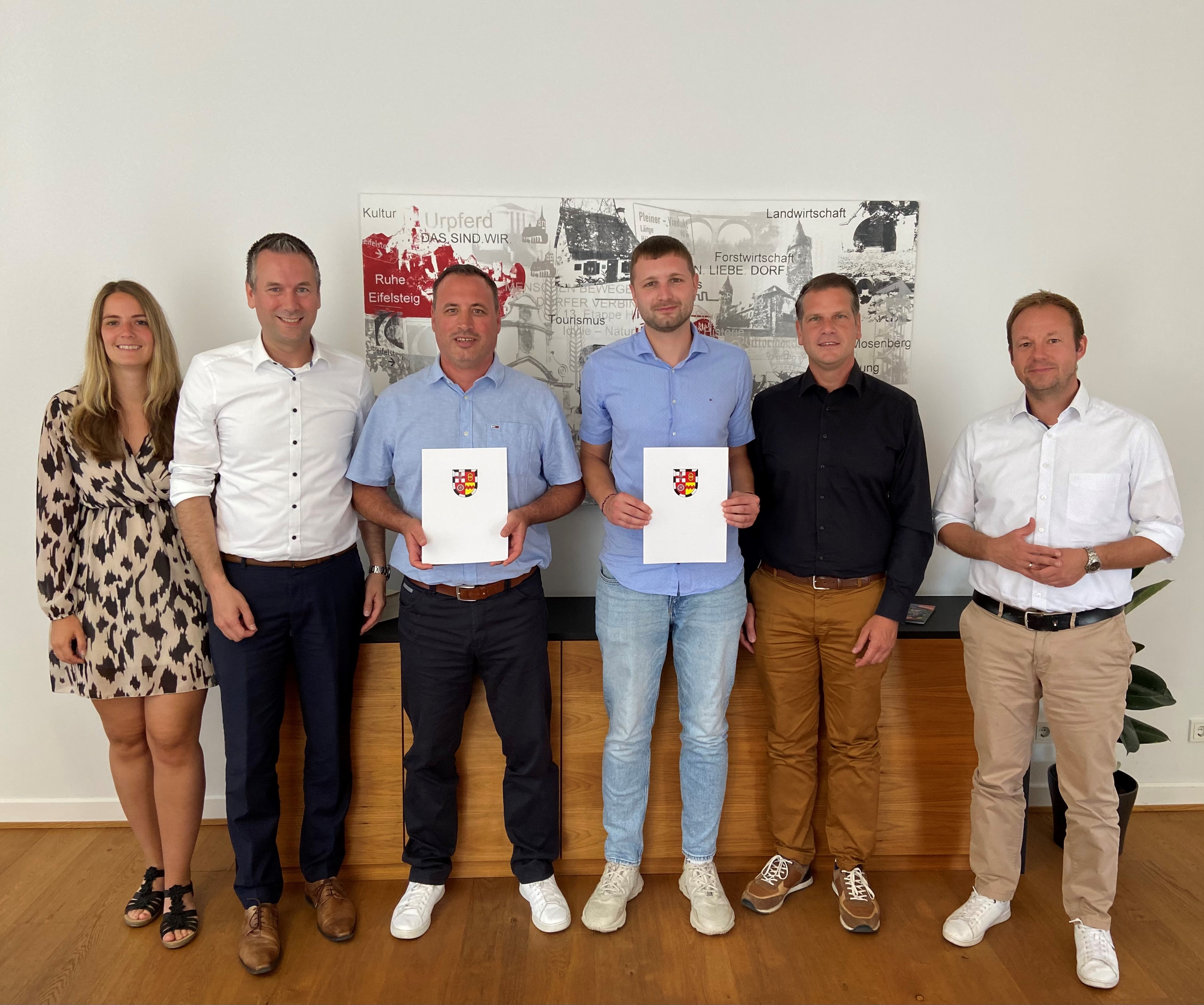 Bürgermeister Manuel Follmann (rechts), Büroleiter Leo