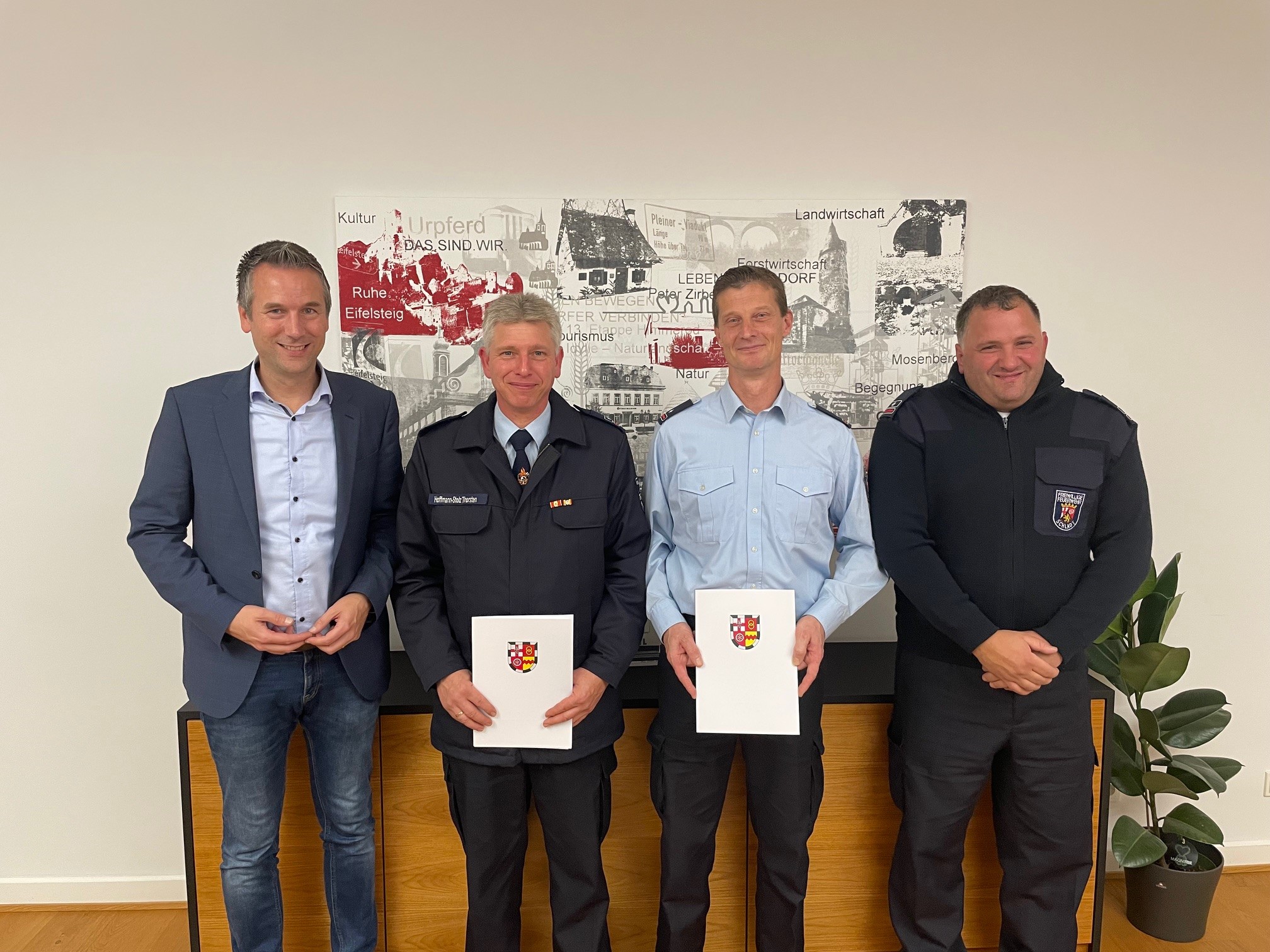 Bürgermeister Manuel Follmann, Thorsten Hoffmann-Stolz, Andreas Kriegsmann und Thorsten Engel