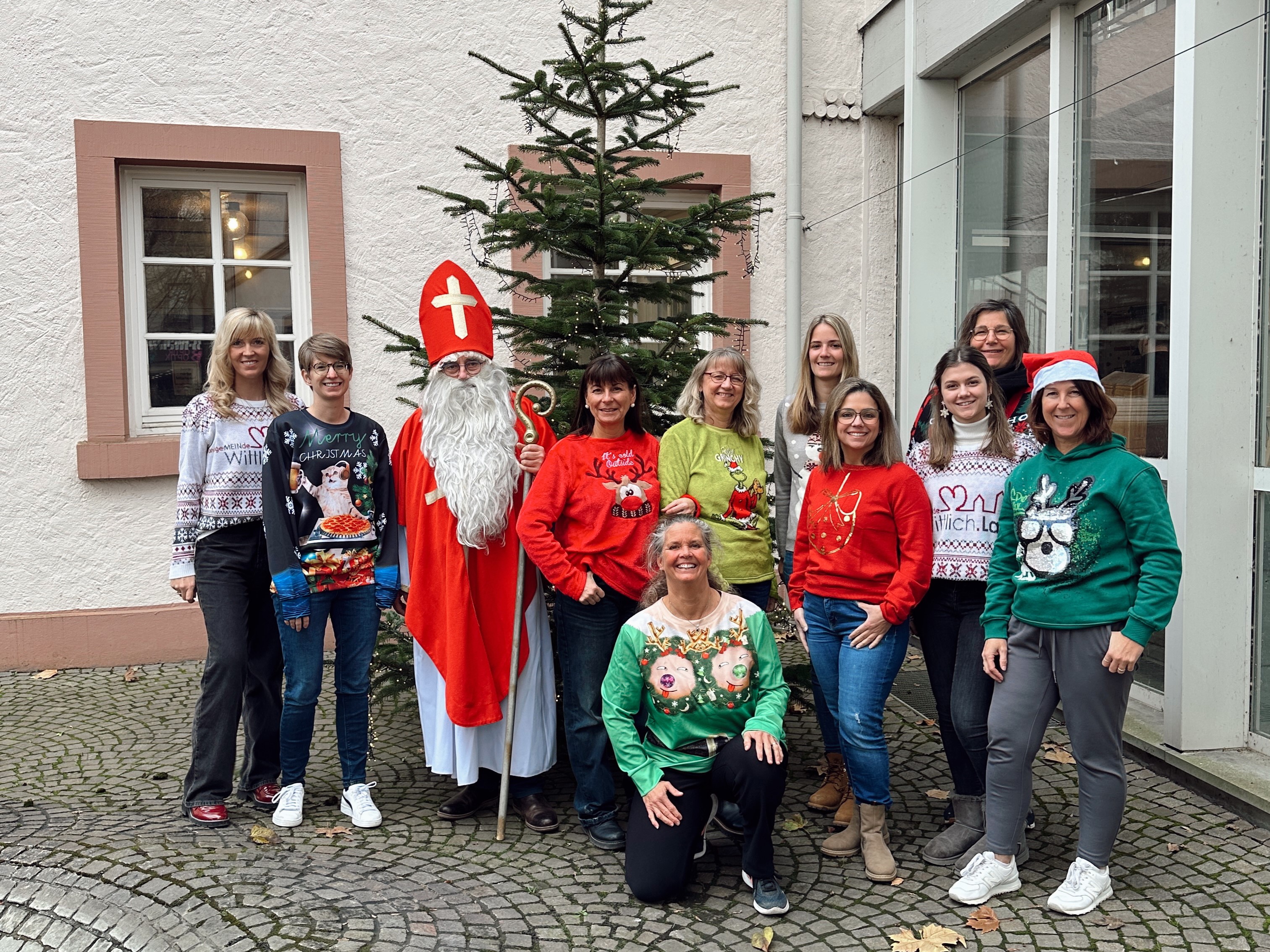 des #teamwittlichland an diesem Tag in kunterbunten Pullis beim traditionellen „Ugly-Christmas-Sweater-Day“.